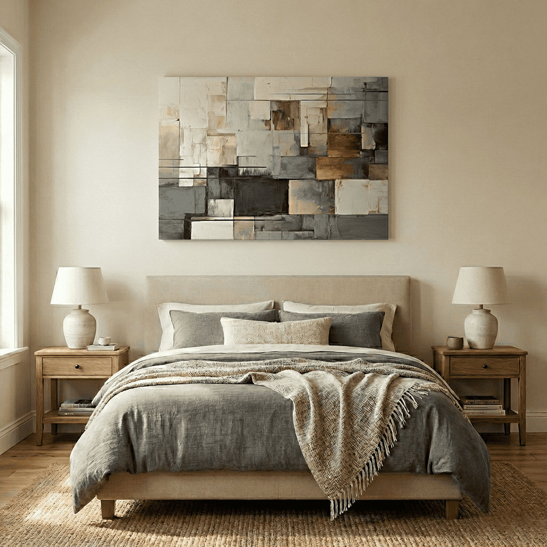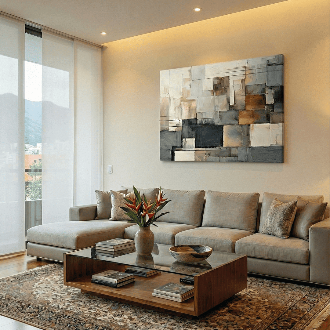 Nuestras obras son impresiones UV de alta resolución con tinta plana, por lo que la única textura que percibirás al tacto es la textura natural del lienzo. Al no utilizar relieves artificiales, garantizamos una imagen nítida, de colores vibrantes y con un acabado moderno y elegante.
