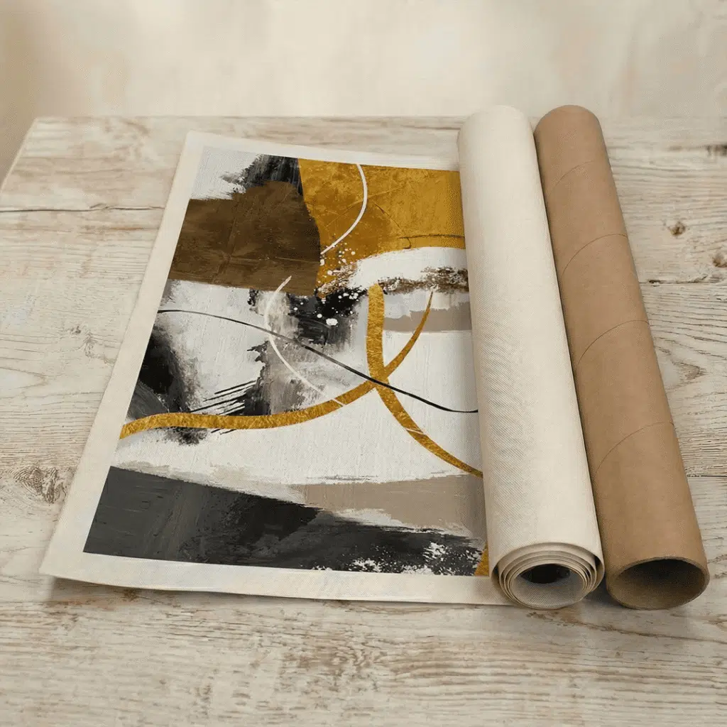 Recibe tu obra en formato de lienzo enrollado, diseñado para resistir el paso del tiempo. Te entregamos la tela impresa con 6 cm de material extra a cada lado, proporcionándote el margen perfecto para un tensado profesional en el bastidor o marco que mejor se adapte a tu estilo.