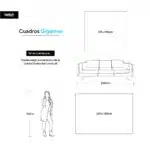 Elegir el tamaño perfecto es la clave para que tu obra transforme el espacio. Hemos diseñado esta guía utilizando una referencia de altura estándar (1.60 m) para que puedas visualizar, con total precisión, la escala de cada medida en tu pared.