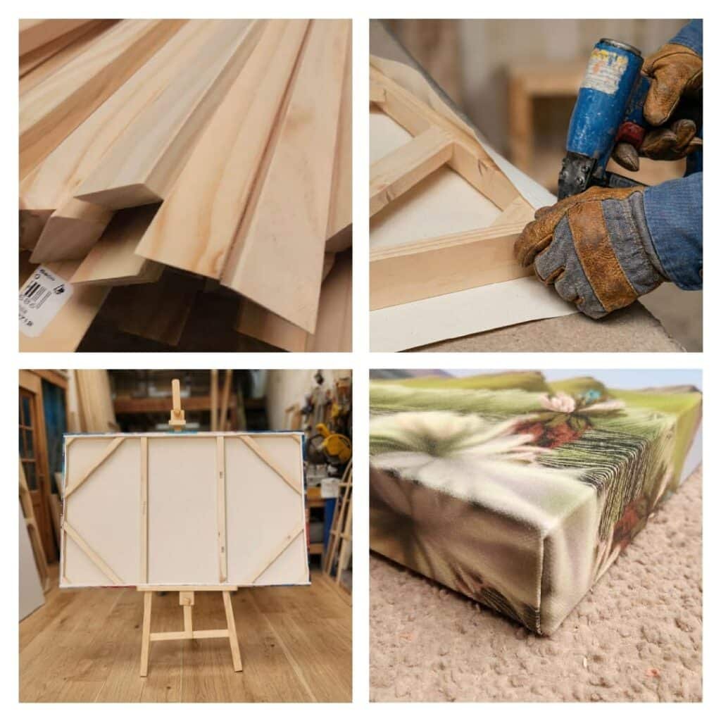 Cada bastidor cuenta con un corte diagonal interno (chaflán) diseñado para que el lienzo no sufra roces ni marcas frontales, manteniendo la superficie perfectamente lisa y tensa.