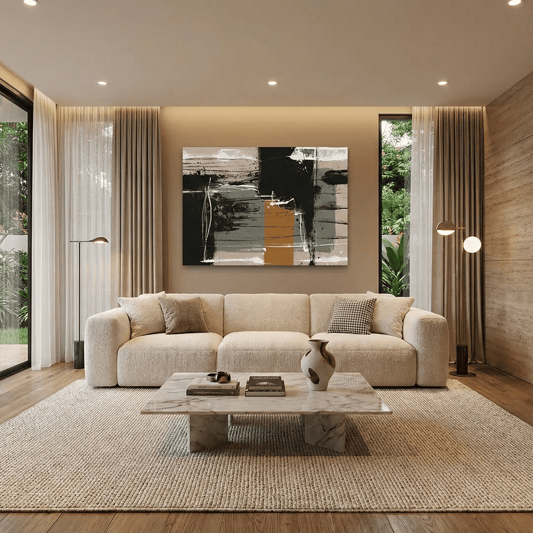 Nuestras obras son impresiones UV de alta resolución con tinta plana, por lo que la única textura que percibirás al tacto es la textura natural del lienzo. Al no utilizar relieves artificiales, garantizamos una imagen nítida, de colores vibrantes y con un acabado moderno y elegante.