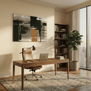 Para que tu espacio luzca equilibrado, te recomendamos seguir la regla de oro del diseño de interiores: el cuadro debe medir aproximadamente dos tercios (2/3) del ancho del mueble que tiene debajo, ya sea tu sofá principal, una cama o una consola.