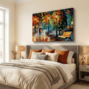 Nuestras obras son impresiones UV de alta resolución con tinta plana, por lo que la única textura que percibirás al tacto es la textura natural del lienzo. Al no utilizar relieves artificiales, garantizamos una imagen nítida, de colores vibrantes y con un acabado moderno y elegante.