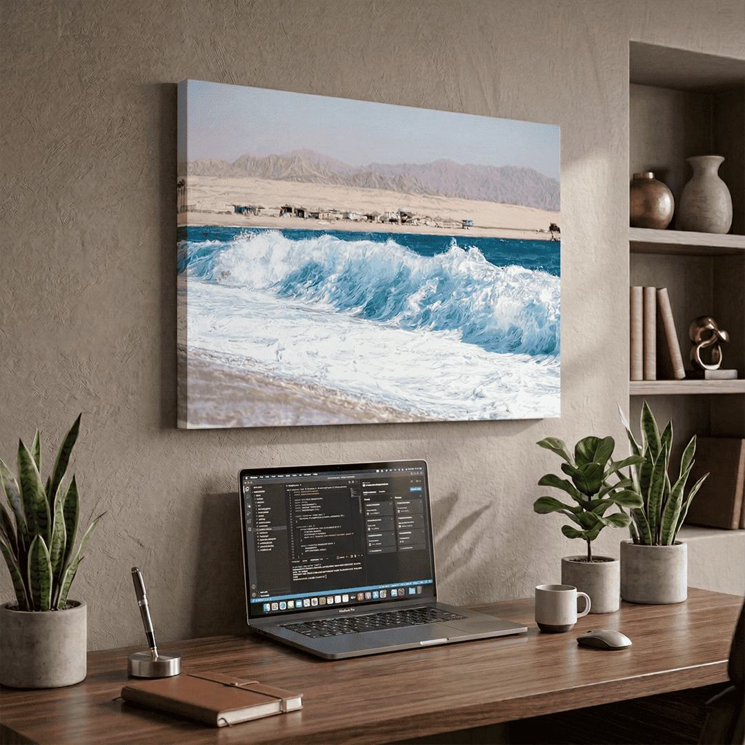 Nuestras obras son impresiones UV de alta resolución con tinta plana, por lo que la única textura que percibirás al tacto es la textura natural del lienzo. Al no utilizar relieves artificiales, garantizamos una imagen nítida, de colores vibrantes y con un acabado moderno y elegante.