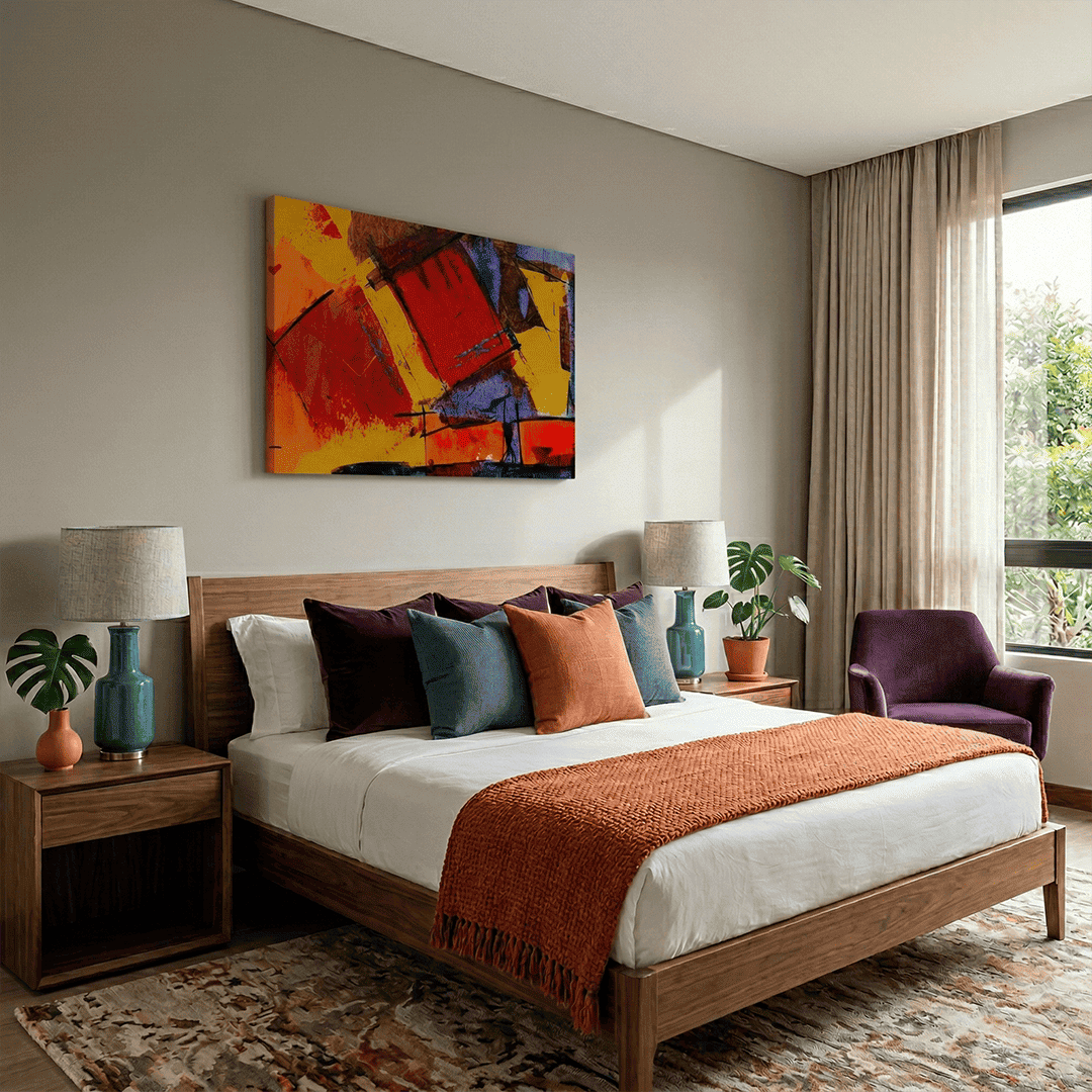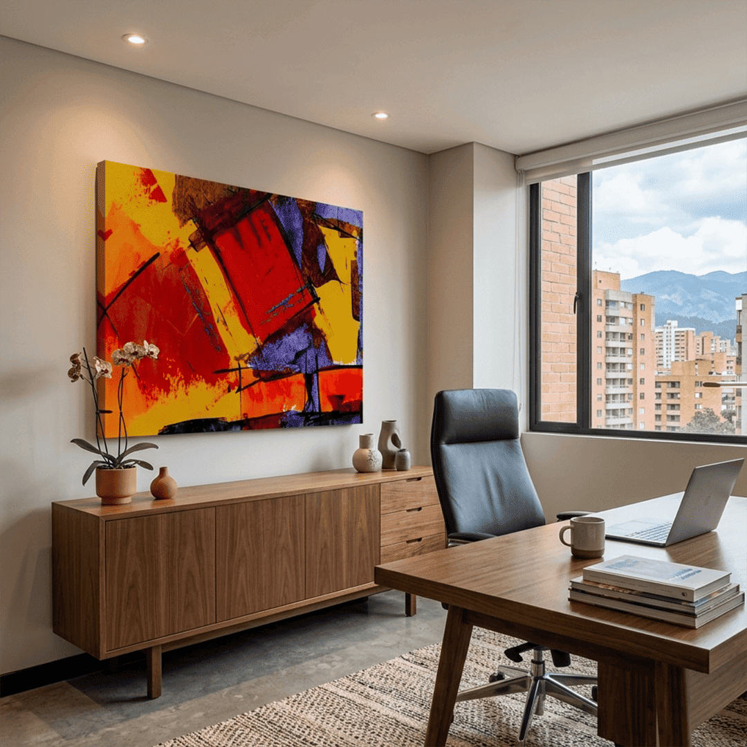 Nuestras obras son impresiones UV de alta resolución con tinta plana, por lo que la única textura que percibirás al tacto es la textura natural del lienzo. Al no utilizar relieves artificiales, garantizamos una imagen nítida, de colores vibrantes y con un acabado moderno y elegante.