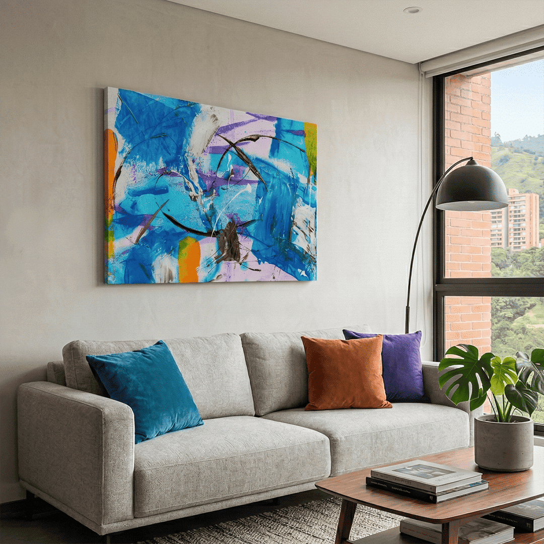 Nuestras obras son impresiones UV de alta resolución con tinta plana, por lo que la única textura que percibirás al tacto es la textura natural del lienzo. Al no utilizar relieves artificiales, garantizamos una imagen nítida, de colores vibrantes y con un acabado moderno y elegante.