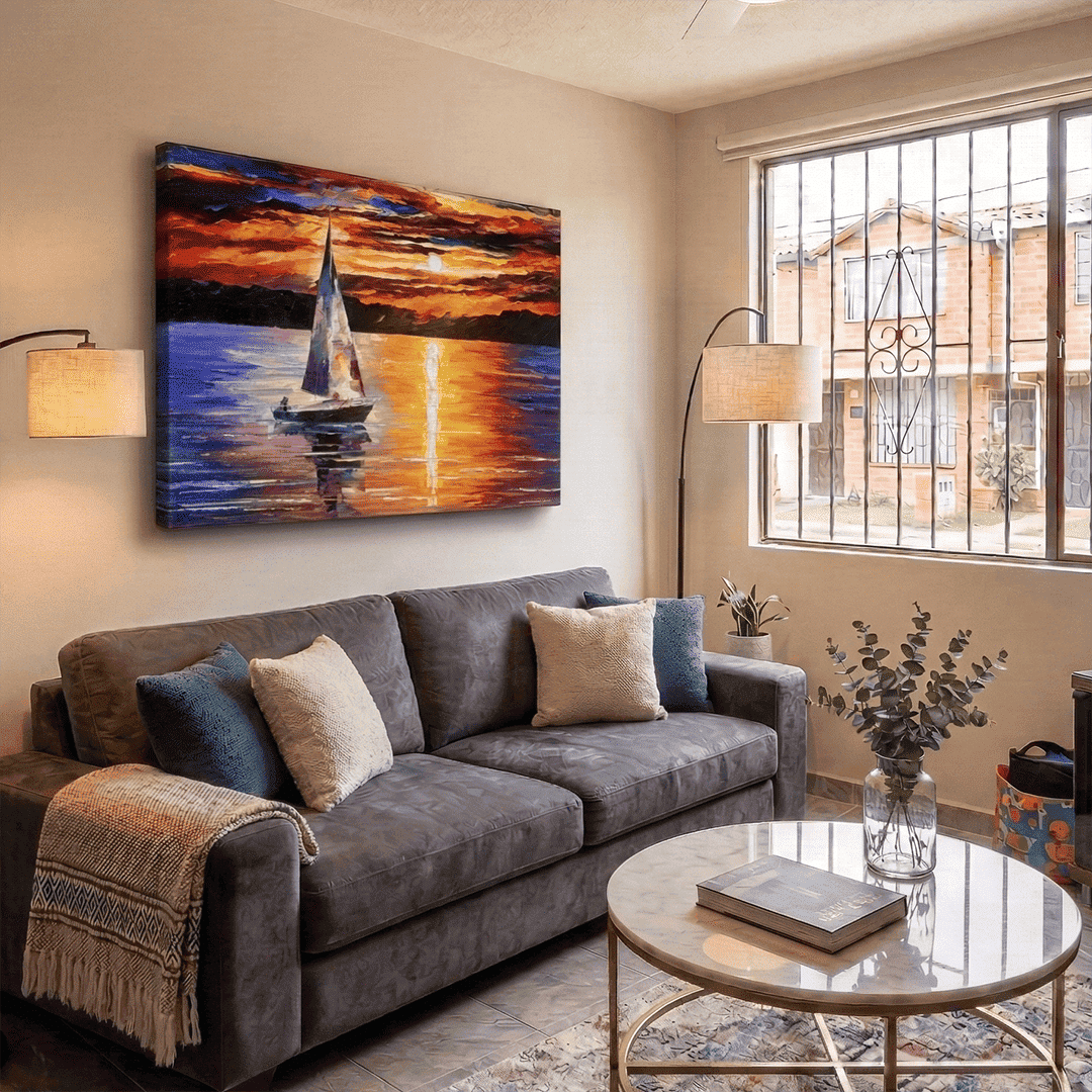 Nuestras obras son impresiones UV de alta resolución con tinta plana, por lo que la única textura que percibirás al tacto es la textura natural del lienzo. Al no utilizar relieves artificiales, garantizamos una imagen nítida, de colores vibrantes y con un acabado moderno y elegante.