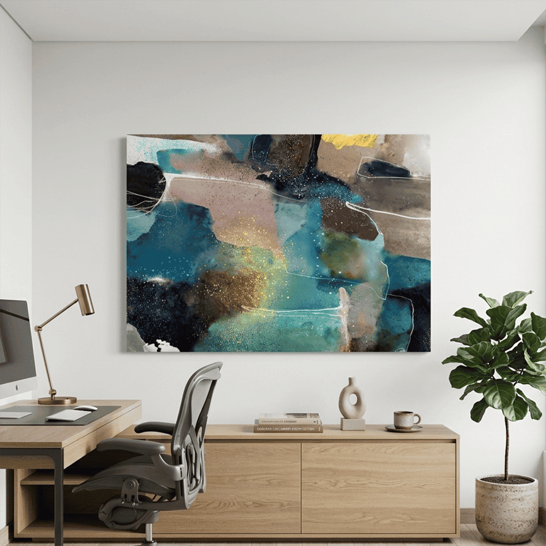 Nuestras obras son impresiones UV de alta resolución con tinta plana, por lo que la única textura que percibirás al tacto es la textura natural del lienzo. Al no utilizar relieves artificiales, garantizamos una imagen nítida, de colores vibrantes y con un acabado moderno y elegante.