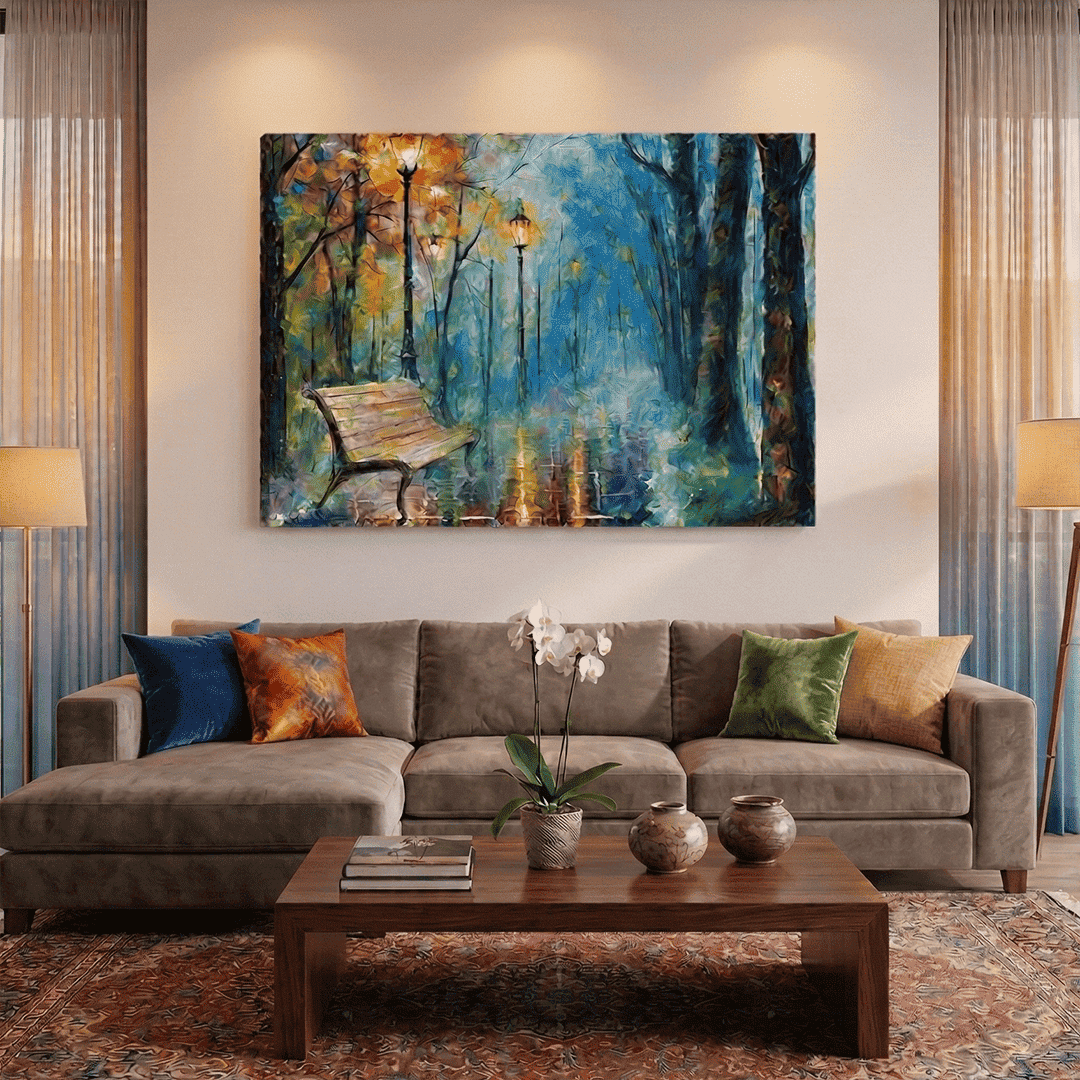 Nuestras obras son impresiones UV de alta resolución con tinta plana, por lo que la única textura que percibirás al tacto es la textura natural del lienzo. Al no utilizar relieves artificiales, garantizamos una imagen nítida, de colores vibrantes y con un acabado moderno y elegante.