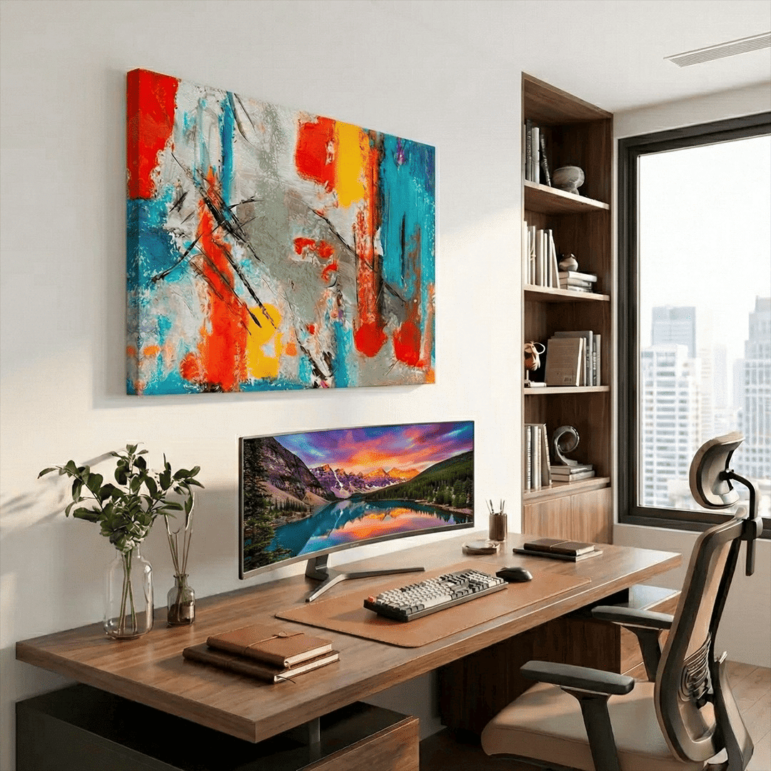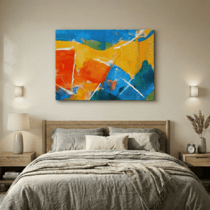 Nuestras obras son impresiones UV de alta resolución con tinta plana, por lo que la única textura que percibirás al tacto es la textura natural del lienzo. Al no utilizar relieves artificiales, garantizamos una imagen nítida, de colores vibrantes y con un acabado moderno y elegante.