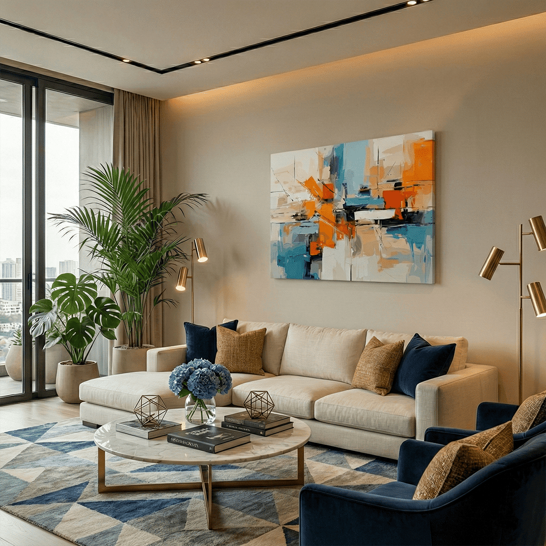 Para que tu espacio luzca equilibrado, te recomendamos seguir la regla de oro del diseño de interiores: el cuadro debe medir aproximadamente dos tercios (2/3) del ancho del mueble que tiene debajo, ya sea tu sofá principal, una cama o una consola.